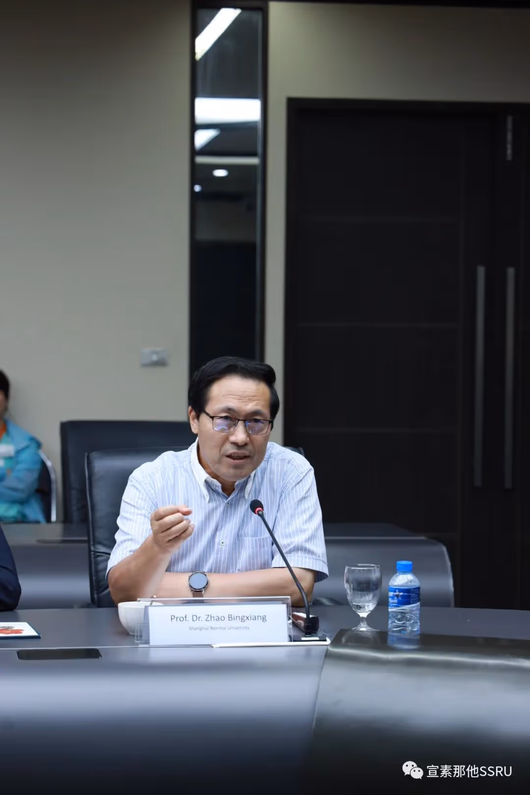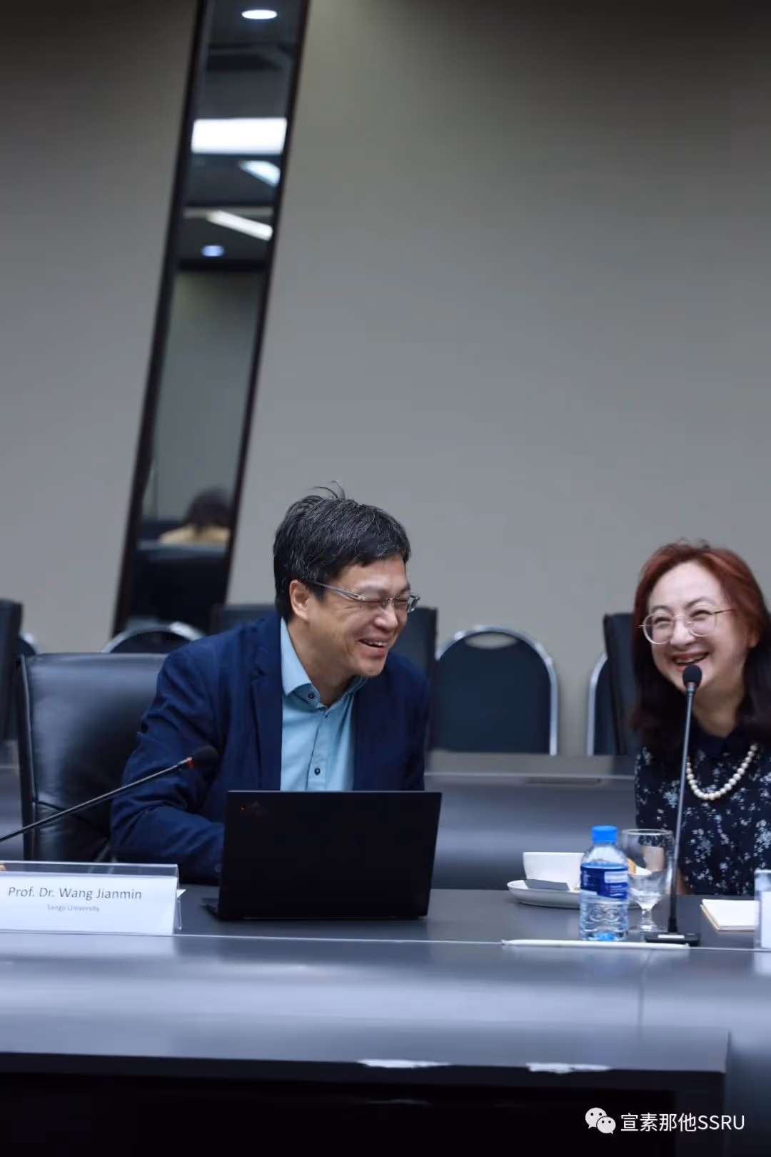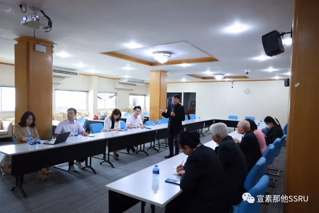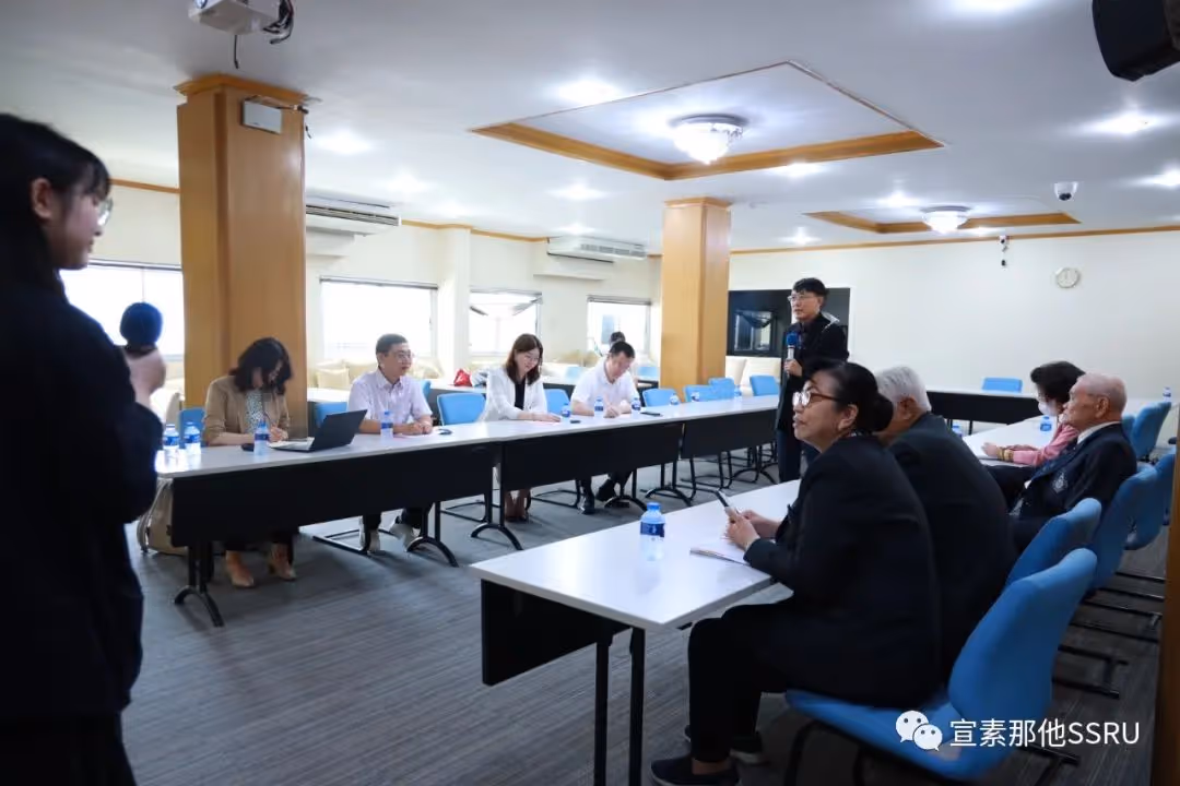 传播艺术学院院长助理教授 Kanpat Utapao 和研究生院副院长 Ploysai Ohama 博士代表宣素那他皇家大学致欢迎辞,热烈欢迎各位中国教授的到来。此次博导受聘仪式不仅仅是中泰教育交流的标志,更是一次高水平的国际合作。感谢中方导师的大力支持,更让我们的合作走向了新的高峰。
