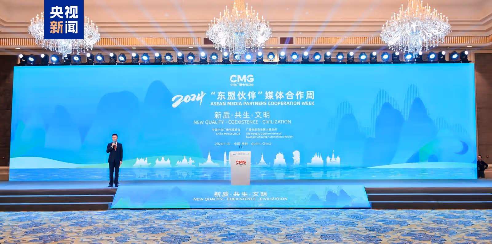 11月8日,由中央广播电视总台和广西壮族自治区人民政府共同主办的2024“东盟伙伴”媒体合作周在广西桂林开幕。