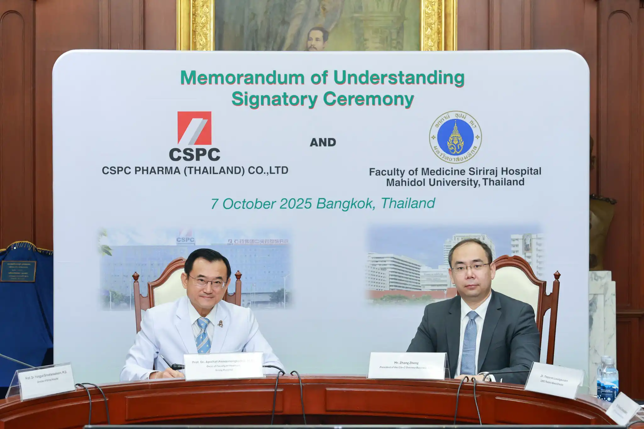 10月7日,泰国石药有限公司(CSPC Pharma (Thailand) Co., Ltd)与泰国久负盛名的玛希隆大学诗里叻医学院宣布,双方已正式签署谅解备忘录(MOU),旨在深化在脑卒中(中风)领域的创新合作。