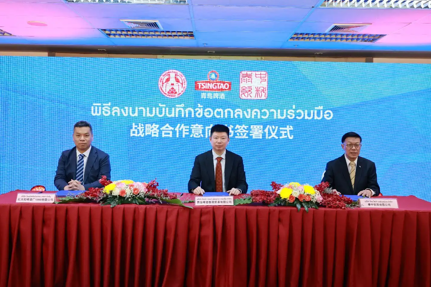 2025年9月24日,青岛啤酒携手红太阳啤酒厂1999有限公司、泰中饮料有限公司及青岛啤酒香港贸易有限公司,在泰国曼谷卡拉宝集团总部3楼举行三方战略合作签约仪式。泰国副总理博温萨,山东省委常委、青岛市委书记曾赞荣,青岛啤酒集团董事长姜宗祥,卡拉宝集团董事长沙田,南荣集团董事长黄喜源,青岛啤酒总裁助理兼海外总经理马宁以及中泰商界多位代表到场见证,共同开启中泰啤酒及饮品产业合作新篇章。
