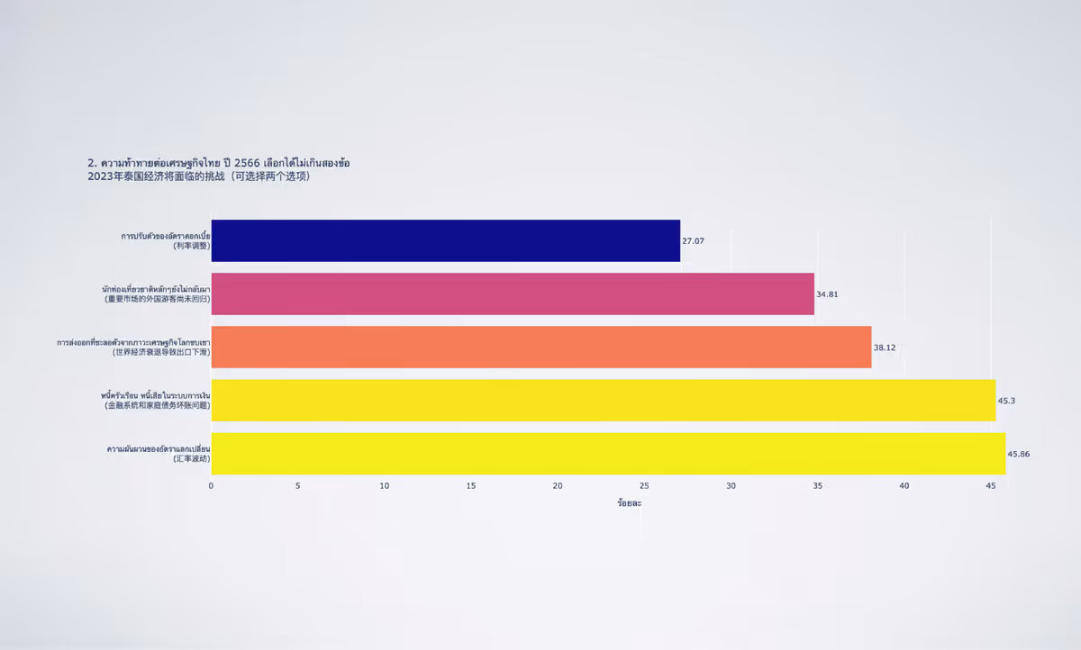 另外,旅游业、农作物、健康产业、线上业务和农产品加工将在2023年第1季度为泰国经济注入动力,同时应该尽快解决旅游业、农作物、房地产和建筑、能源和公用事业行业问题。