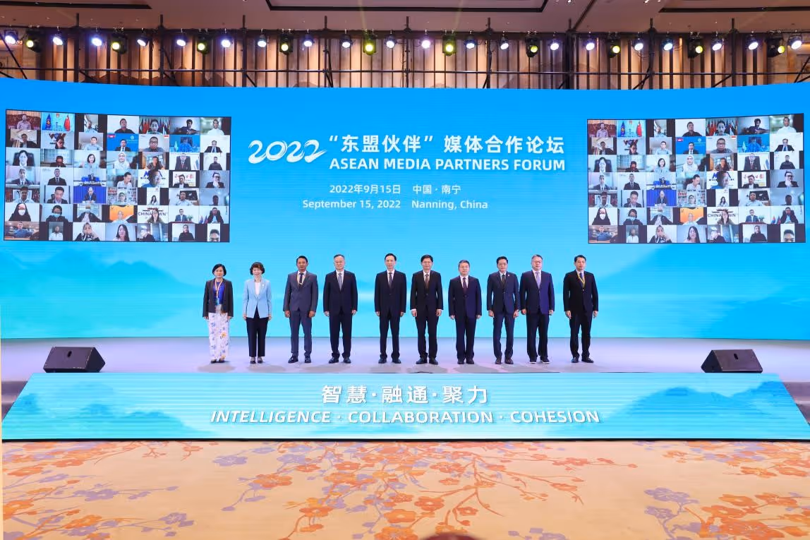 据广西日报报道 9月15日,2022“东盟伙伴”媒体合作论坛在中国广西南宁举行。来自17个国家70余家媒体及机构的近180位中外嘉宾以线上线下结合的方式,围绕“智慧·融通·聚力”主题展开对话,推动中国与东盟国家媒体开展更多维度、更深层次的交流合作,助力构建更为紧密的中国-东盟命运共同体。