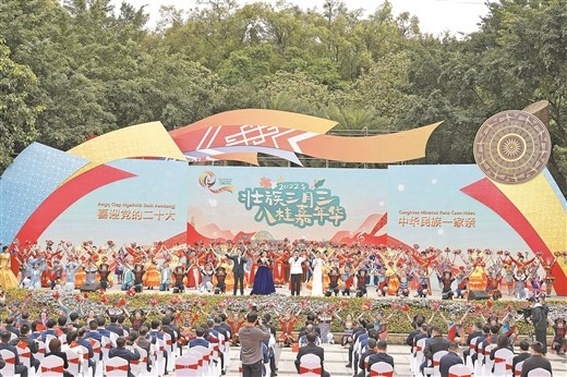 据广西日报报道 日前,春暖花开,2022年“壮族三月三·八桂嘉年华”活动在广西各地如期举行。活动以线上线下相结合的方式,对精彩纷呈的民族传统文化进行大型展演。