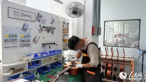 โรงงานทรูมอนกีตาร์ (TrumonGuitars) ในอำเภอตงอัน มณฑลหูหนานทางตอนกลางของจีนกำลังสร้างชื่อในฐานะผู้ผลิตกีตาร์รายใหญ่ของประเทศด้วยการผสมผสานเทคโนโลยีอัจฉริยะกับงานฝีมือดั้งเดิม