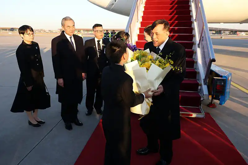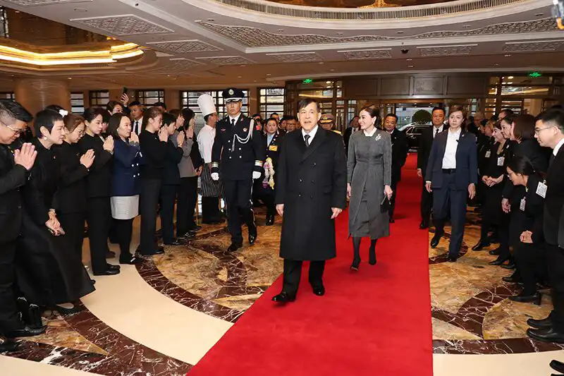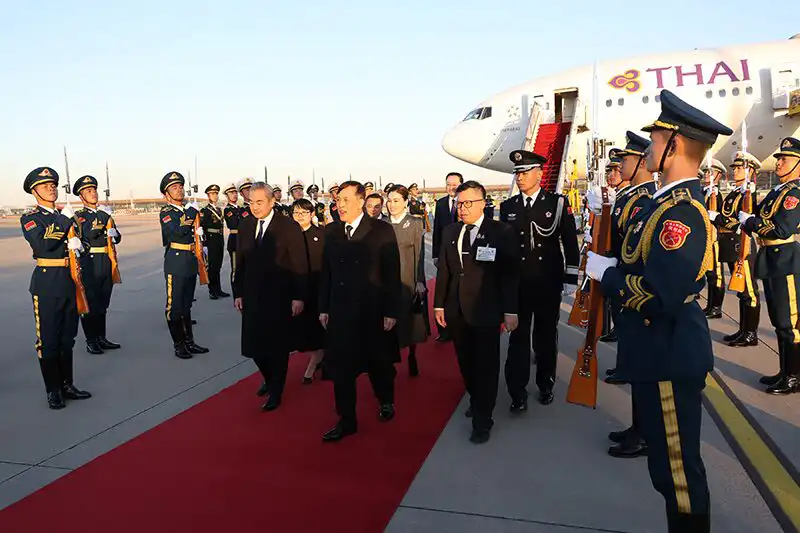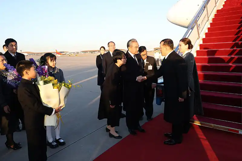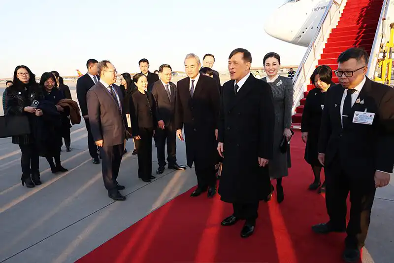 โดยมี นายหวัง อี้ (Mr. Wang Yi) สมาชิกกรมการเมือง ผู้อำนวยการสำนักงานคณะกรรมการกลางด้านกิจการต่างประเทศของพรรคคอมมิวนิสต์จีนและรัฐมนตรีว่าการกระทรวงการต่างประเทศ สาธารณรัฐประชาชนจีน พร้อมด้วยข้าราชการระดับสูงสาธารณรัฐประชาชนจีน เฝ้าทูลละอองธุลีพระบาทรับเสด็จ