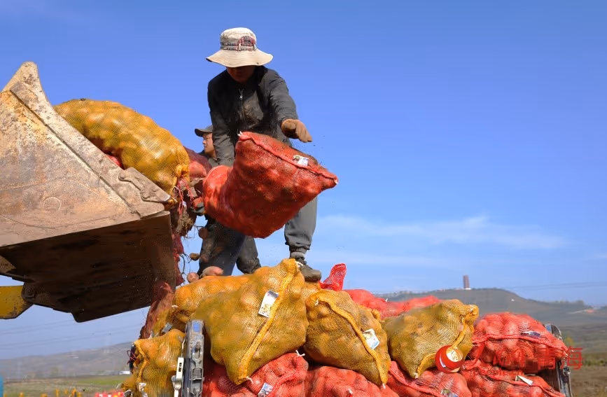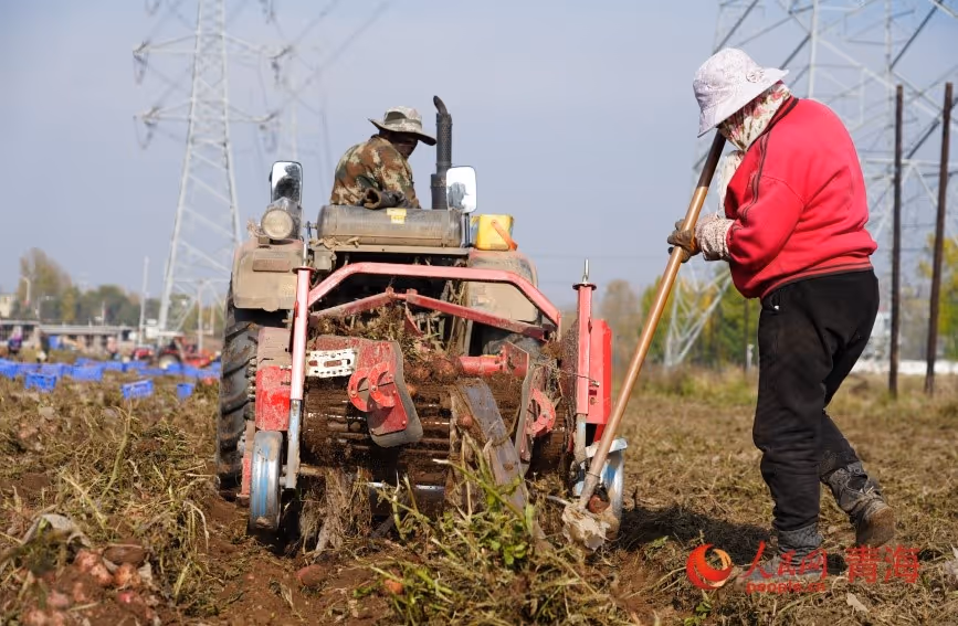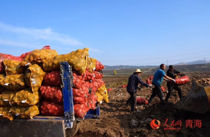 ช่วงปลายฤดูใบไม้ร่วง ท้องฟ้าเหนือที่ราบสูงปลอดโปร่งและสดใสเขตหวงจง เมืองซีหนิง มณฑลชิงไห่ กำลังเข้าสู่ช่วงฤดูเก็บเกี่ยวมันฝรั่งเครื่องเก็บเกี่ยวทำงานส่งเสียงกึกก้องในทุ่งนามันฝรั่งลูกโตถูกขุดขึ้นจากผืนดินทีละหัว สีแดงอมทองสะท้อนแสงแดดระยิบระยับรอการเก็บรวบรวมและบรรทุกขึ้นรถ