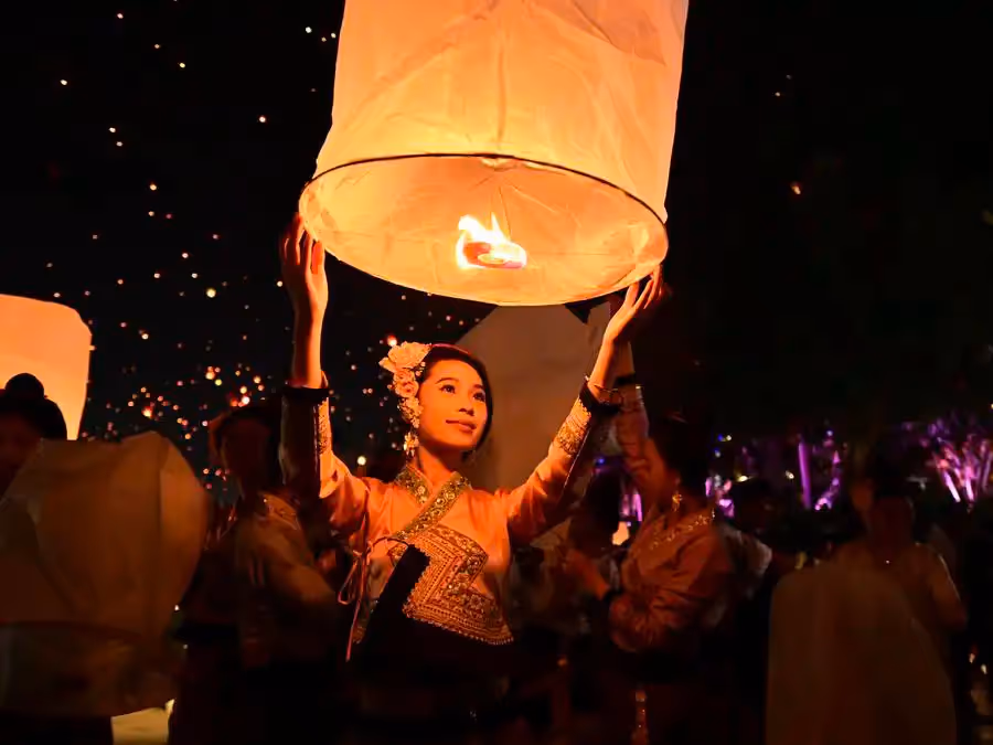 พายเรือมังกร ปล่อยโคมลอย ฉลองปีใหม่ไทสิบสองปันนา สุดละลานตา