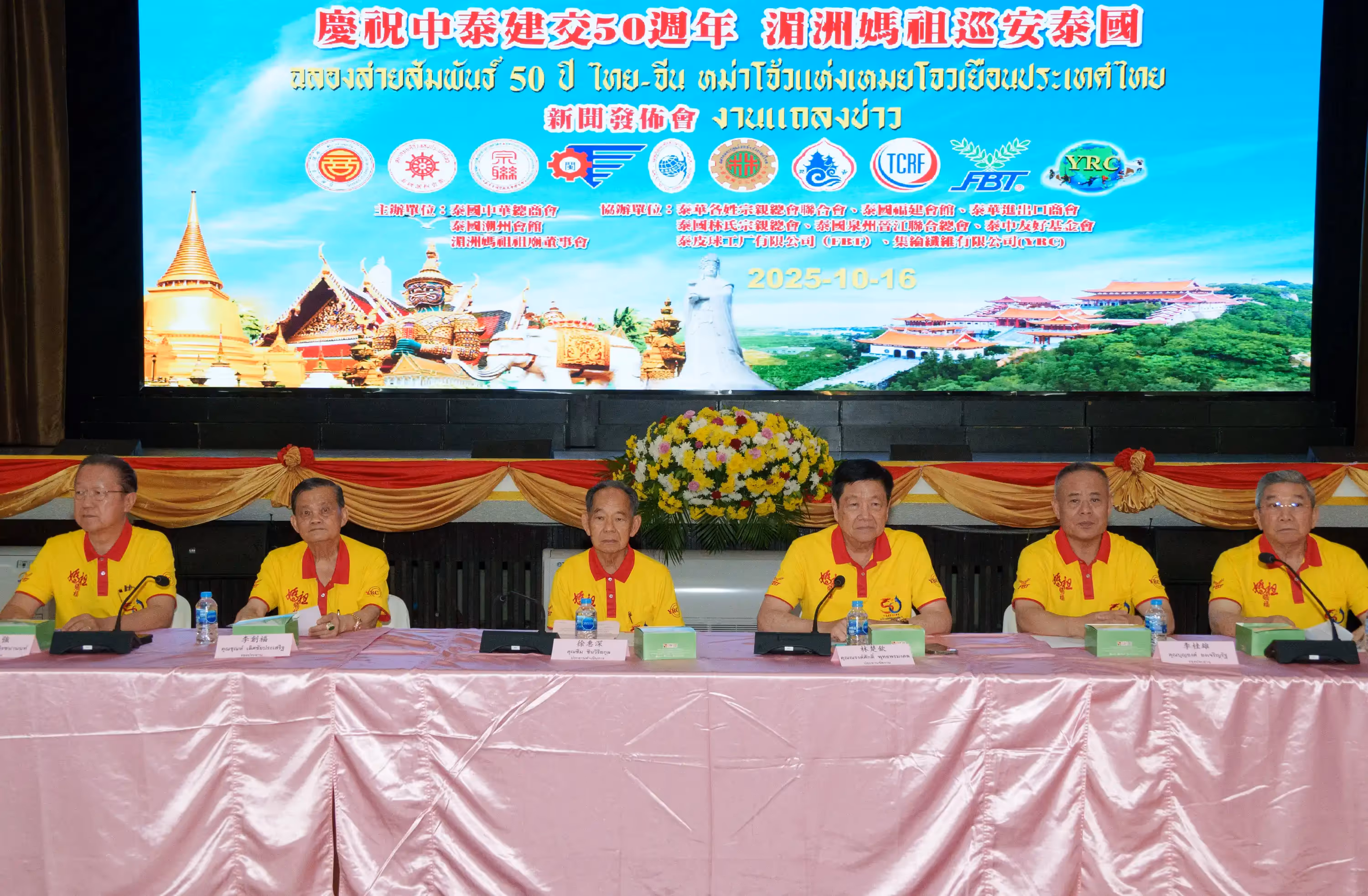 เมื่อวันที่ 16 ตุลาคม 2568 หอการค้าไทย-จีน และสมาคมแต้จิ๋วแห่งประเทศไทย จัดงานแถลงข่าวการจัดงาน “ฉลองสายสัมพันธ์ 50 ปี ไทย-จีน: หม่าโจ้วแห่งเหมยโจวเยือนประเทศไทย” ณ ห้องประชุม สมาคมแต้จิ๋วแห่งประเทศไทย