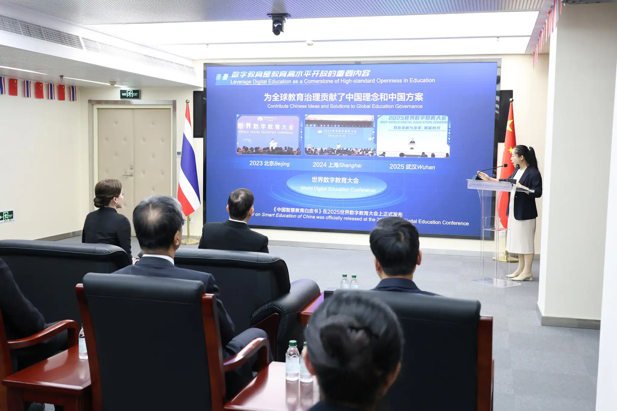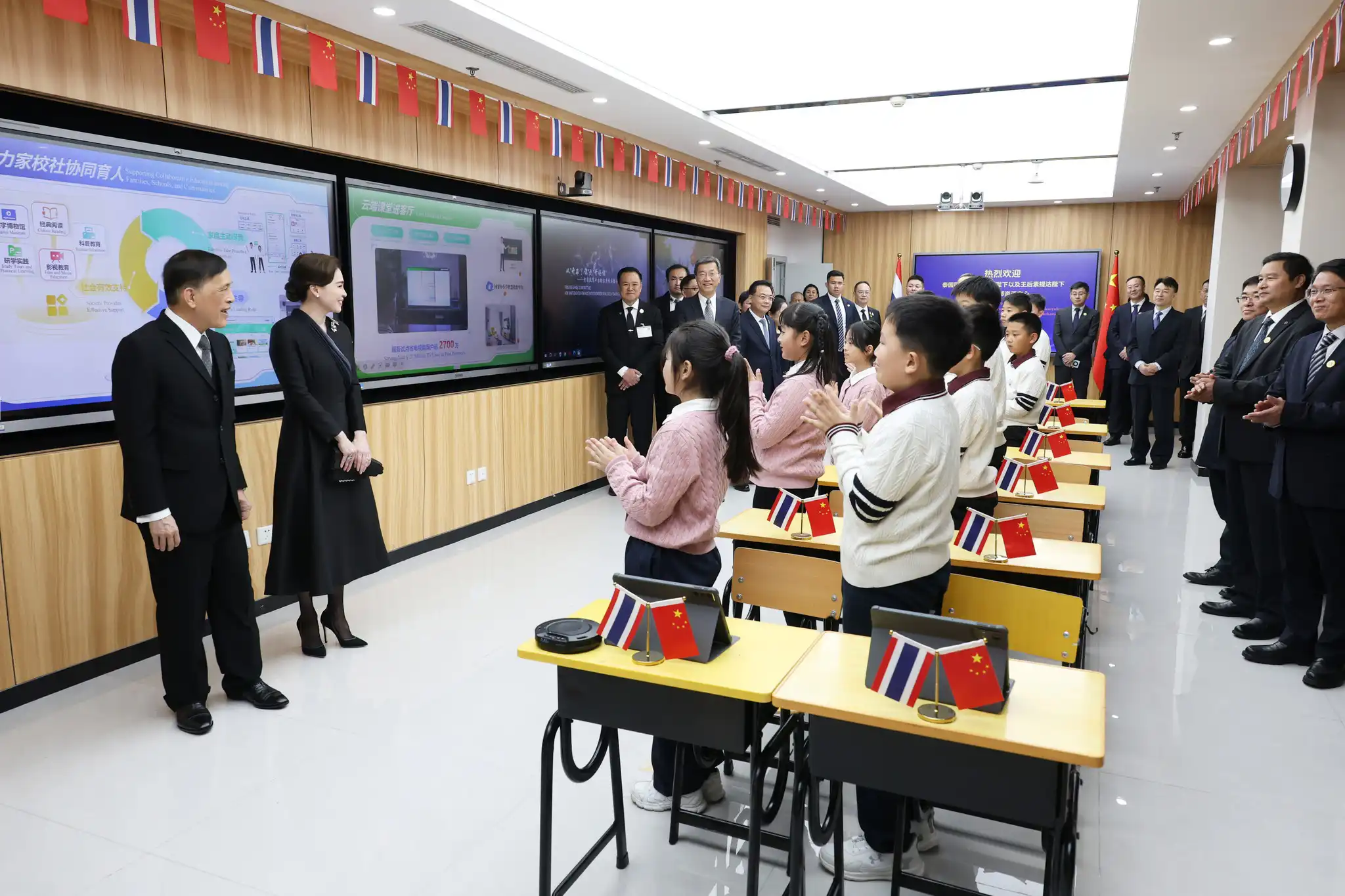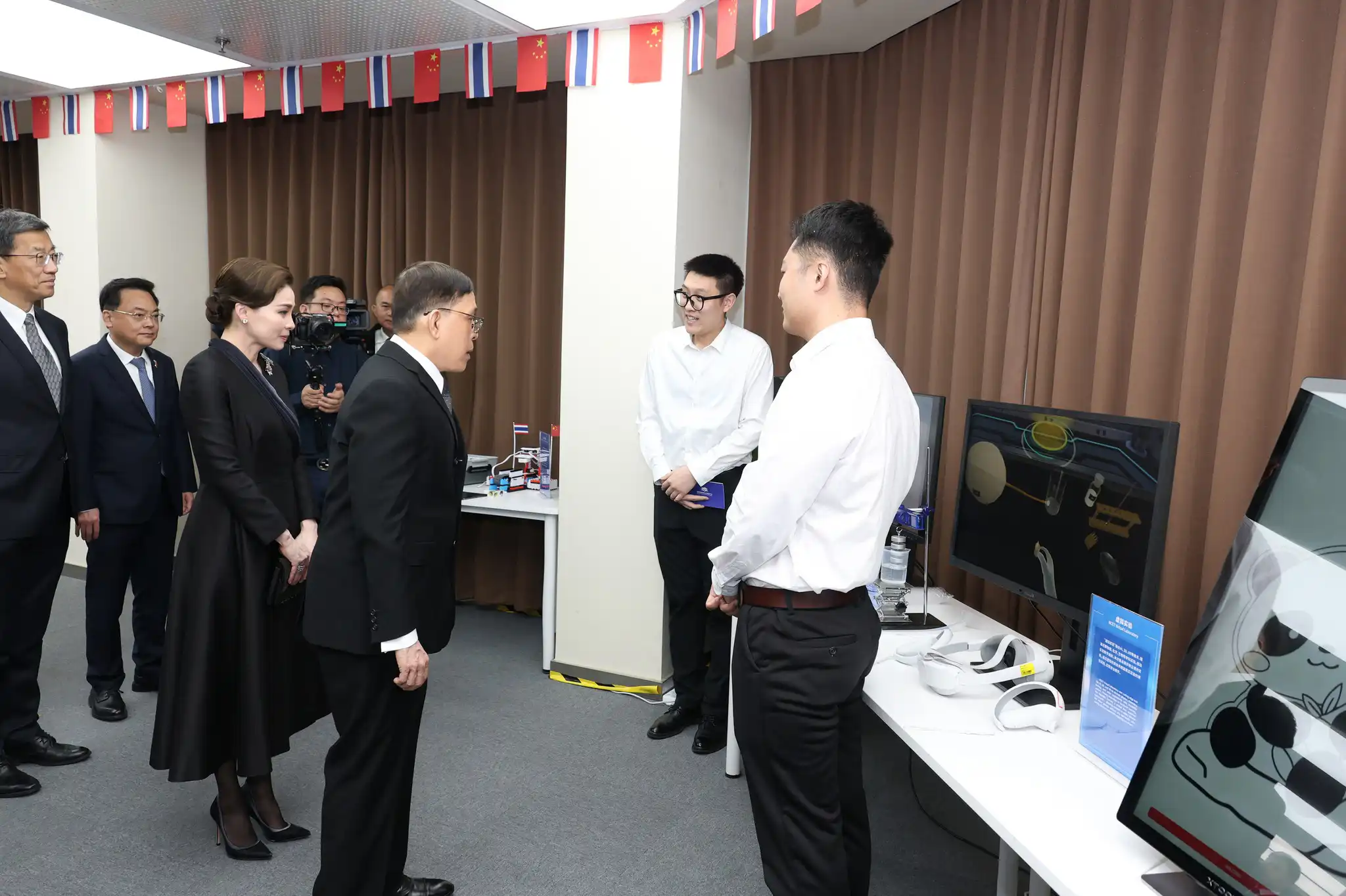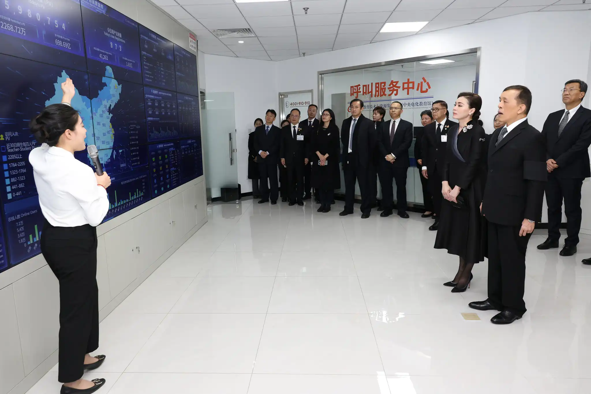 จากนั้นเสด็จพระราชดำเนินไปทอดพระเนตรวีดิทัศน์และทรงรับฟังการบรรยายภาพรวมการพัฒนาระบบการศึกษาอัจฉริยะของสาธารณรัฐประชาชนจีนและทอดพระเนตรอุปกรณ์ทางเทคโนโลยีที่นำมาประยุกต์ใช้ด้านการศึกษาอัจฉริยะประกอบด้วย การทดลองทางวิทยาศาสตร์ ห้องทดลองเสมือนจริง หลักสูตรการเรียนการสอนปัญญาประดิษฐ์เครื่องตรวจข้อสอบ เครื่องสอนการเขียนพู่กันจีนและเครื่องเลเซอร์แกะสลักสื่อการสอน