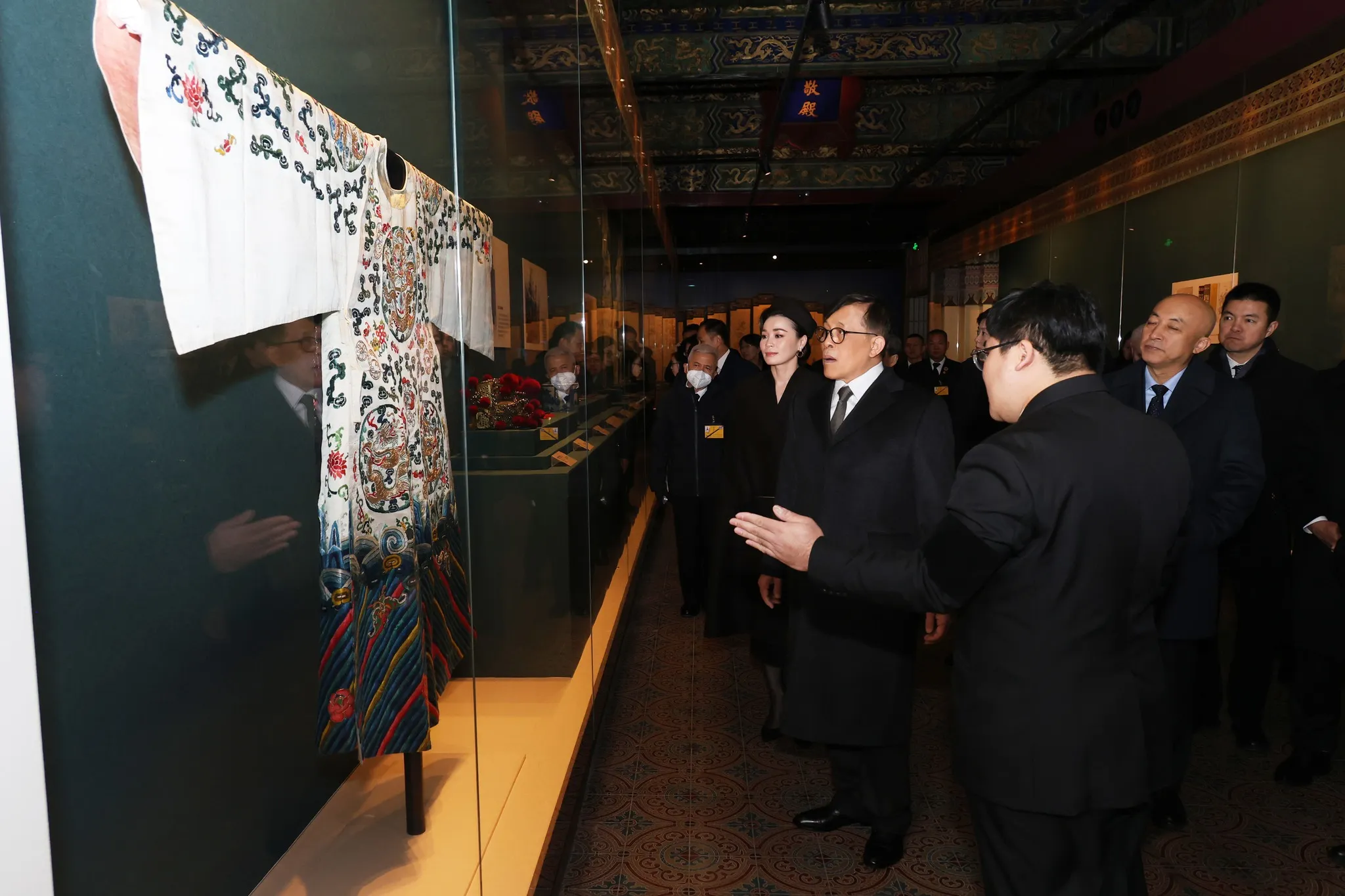 จากนั้น เสด็จพระราชดำเนินไปยังพิพิธภัณฑ์พระราชวังโบราณ ในการนี้ พระราชทานพระบรมราชวโรกาสให้ นายหวัง ซวี่ตง ผู้อำนวยการพิพิธภัณฑ์พระราชวังโบราณ และผู้แทนพรรคคอมมิวนิสต์จีนประจำกระทรวงวัฒนธรรมและการท่องเที่ยวสาธารณรัฐประชาชนจีน กราบบังคมทูลรายงานความเป็นมาของการจัดนิทรรศการ “หมื่นมิ่งมงคลไชย สายสัมพันธ์นิรันดร : นิทรรศการโบราณวัตถุ ฉลอง 50 ปี ความสัมพันธ์ทางการทูตไทย-จีน”เสร็จแล้วทอดพระเนตรนิทรรศการ ฯ รอบปฐมทัศน์