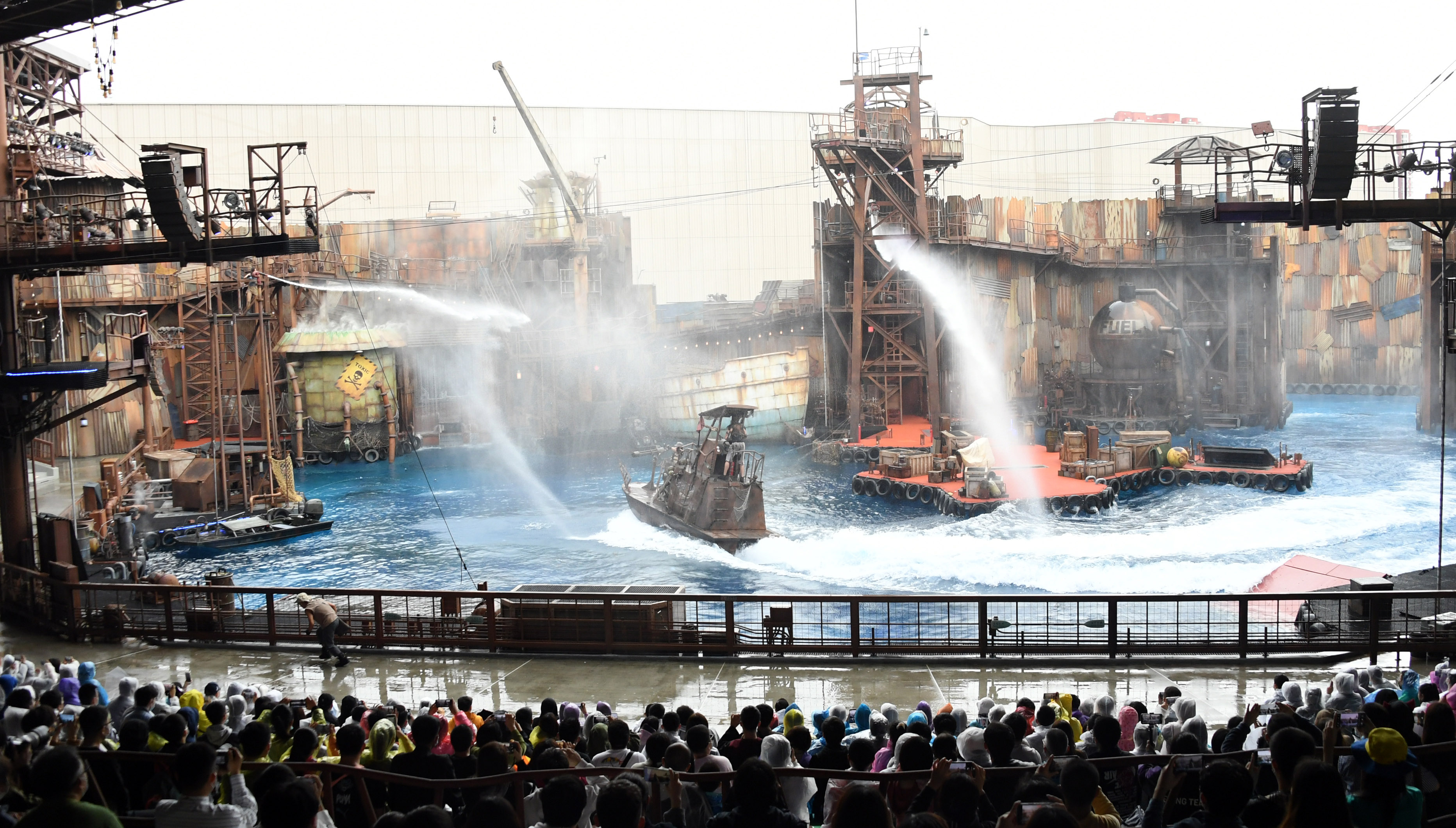ภายในประกอบด้วยอาณาจักรสวนสนุกธีมต่างๆ7 โซน ทั้งโซนถนนฮอลลีวู้ด, แฮร์รี่ พอตเตอร์ , มินเนียนแลนด์,หุ่นยนต์ทรานสฟอร์เมอร์ส และโลกใต้สมุทร (Water Word) ที่นี่ยังนับเป็นแห่งแรกของโลกที่มีการเปิดโซนใหม่“กังฟูแพนด้าแลนด์ ดินแดนสุดวิเศษ” (Kung Fu Panda Land of Awesomeness) ที่มีการผสมผสานวัฒนธรรมจีน และโซน JurassicWorld Isla Nublar ผจญภัยไปกับดินแดนไดโนเสาร์บนเกาะอิสลานูบลาร์ จากภาพยนตร์ Jurassic World